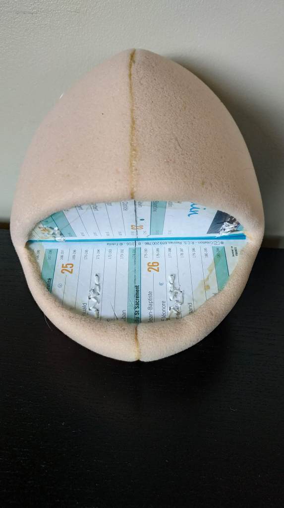 Voici donc les étapes de la construction. Nous avons suivi les instructions d’ Adam Kreutiger qui sont enthousiasmantes et assez claires.Nous avons du faire plusieurs essais, l’étape la plus délicate étant l’intérieur de la bouche : il faut un tissus un peu extensible pour faire l’intérieur et ne pas hésiter à adapter le patron pour que ça tende bien. Ensuite, il faut bien garder à l’esprit que c’est du « fait main », ce n’est ni parfait, ni parfaitement symétrique!