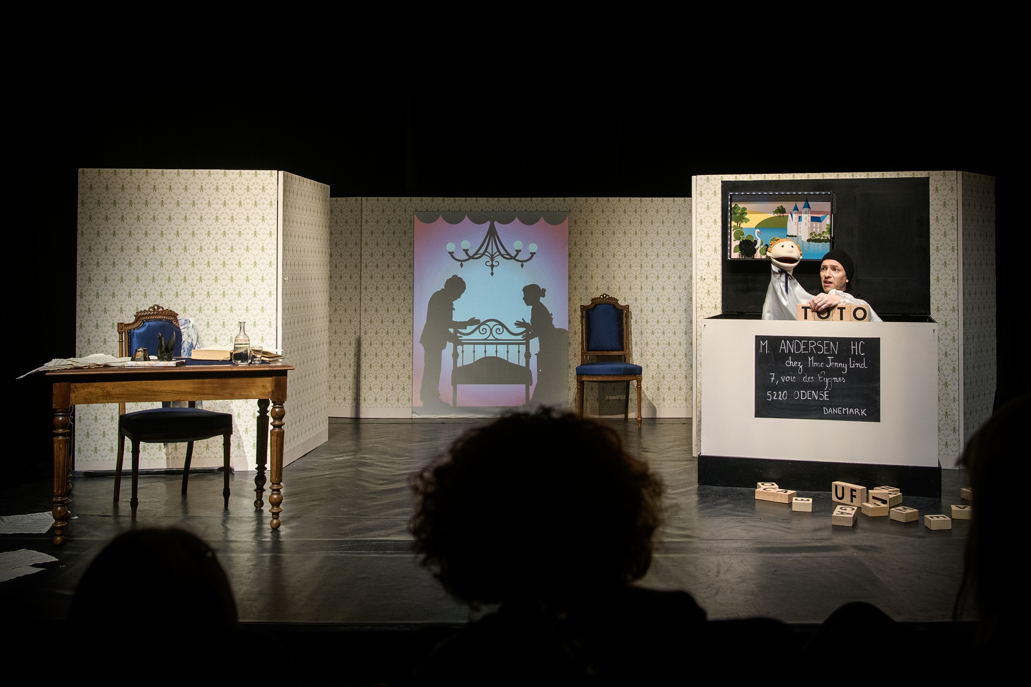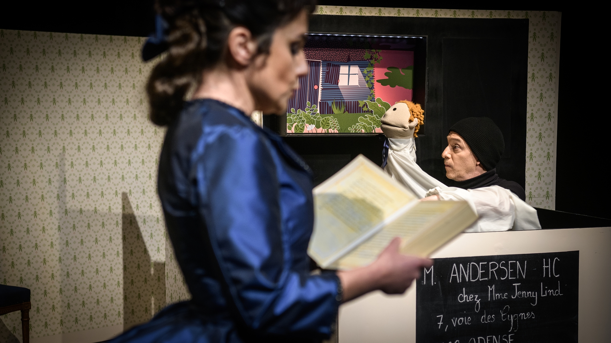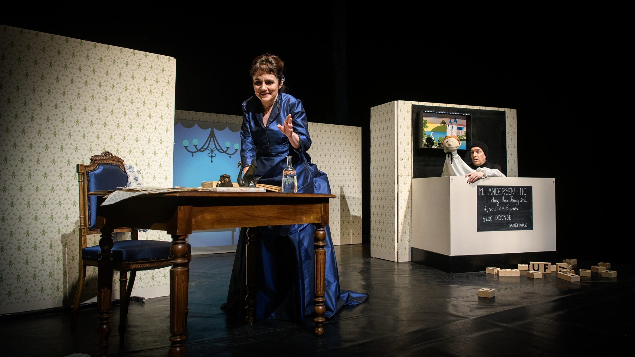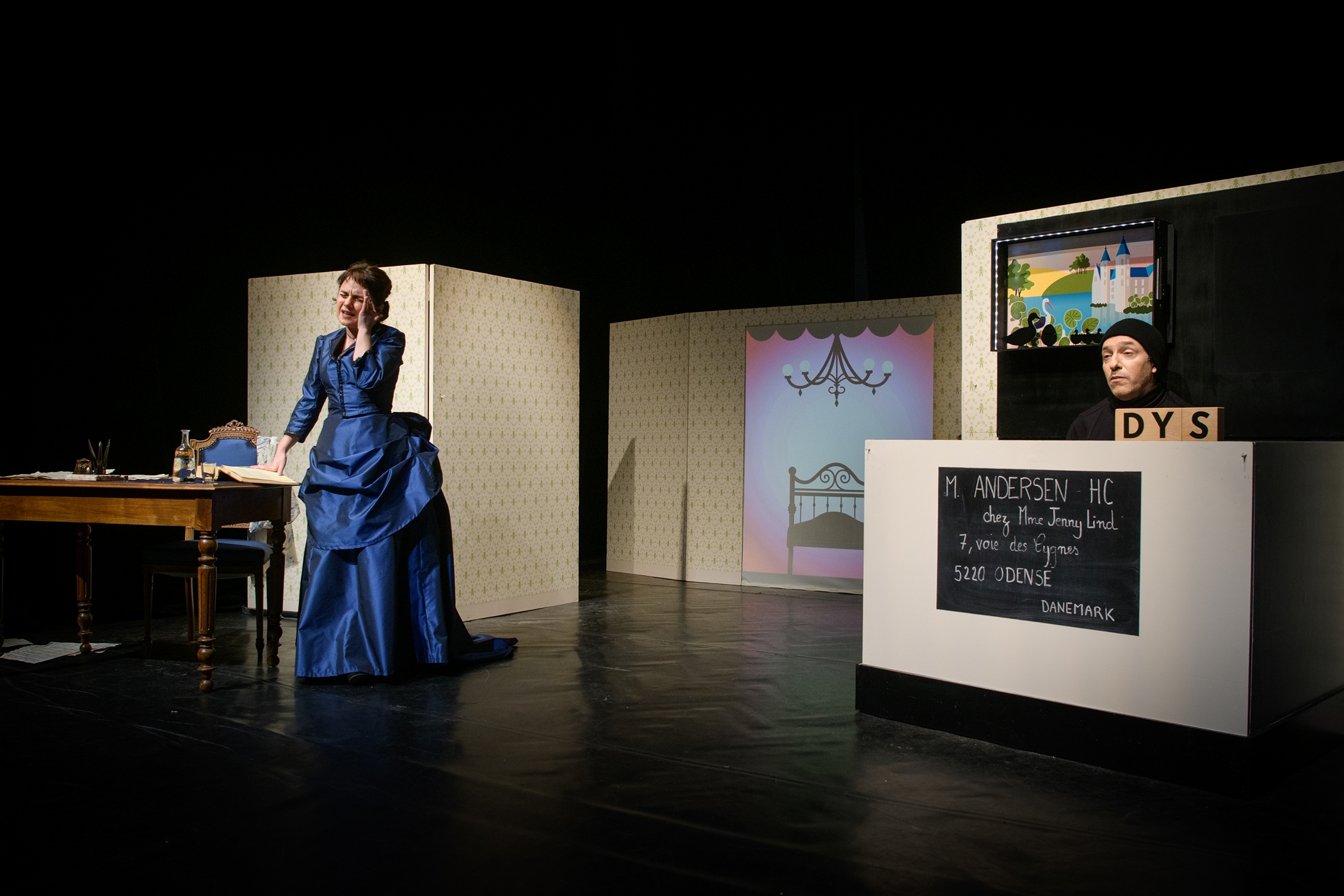 Nous sommes le 4 août 1875 dans la maison de la cantatrice Jenny Lind. Son vieil ami, le conteur Hans Christian Andersen est très malade. Il est chez elle en convalescence et elle prend soin de lui. On vient d’apporter une malle de Copenhague. Elle contient des souvenirs de jeunesse d’Andersen. Jenny brûle de l’ouvrir mais hésite à le faire en l’absence du principal intéressé qui dort dans la chambre d’à côté. Alors qu’elle sort quelques instants, la malle se met à bouger et une marionnette en sort : c’est Hans Christian, un Hans Christian qui a 10 ans ! Il va confier au public un secret qu’il n’a jamais révélé à personne : il est dyslexique.