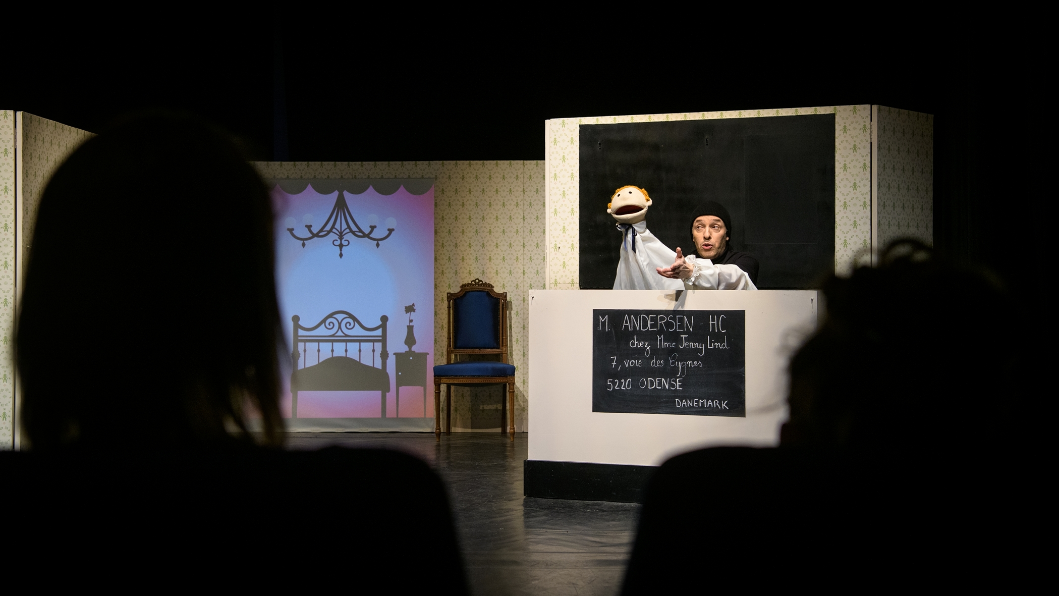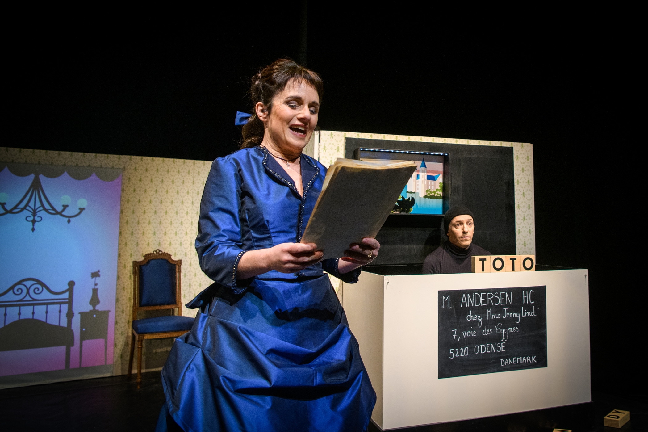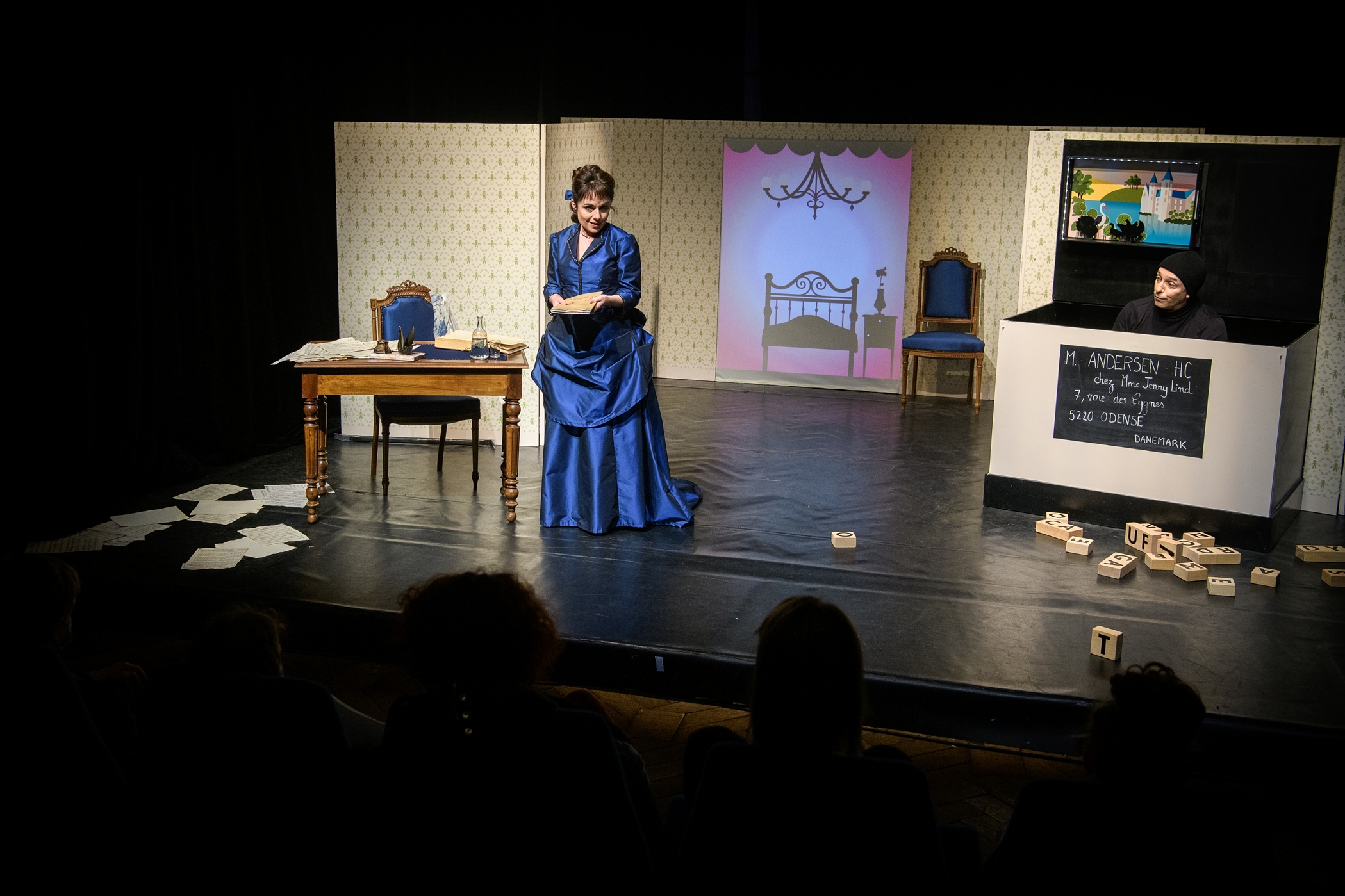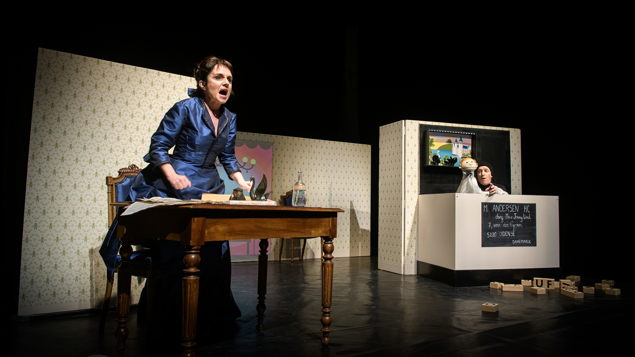 Nous sommes le 4 août 1875 dans la maison de la cantatrice Jenny Lind. Son vieil ami, le conteur Hans Christian Andersen est très malade. Il est chez elle en convalescence et elle prend soin de lui. On vient d’apporter une malle de Copenhague. Elle contient des souvenirs de jeunesse d’Andersen. Jenny brûle de l’ouvrir mais hésite à le faire en l’absence du principal intéressé qui dort dans la chambre d’à côté. Alors qu’elle sort quelques instants, la malle se met à bouger et une marionnette en sort : c’est Hans Christian, un Hans Christian qui a 10 ans ! Il va confier au public un secret qu’il n’a jamais révélé à personne : il est dyslexique.